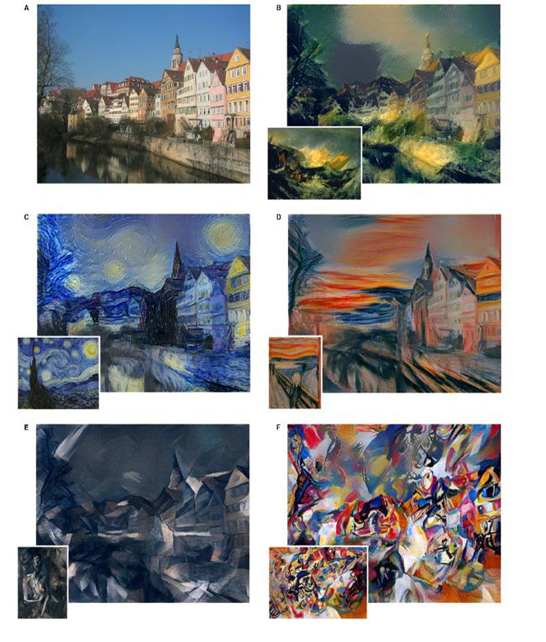 Magát az algoritmust nem publikálták, egyelőre csak példákon keresztül mutatták be, mire képes. Egy teljesen átlagos városi utcaképet alakítottak át több híres festő képe alapján. Vincent van Gogh, Pablo Picasso, Vaszilij Kandinszkij, J.M.W. Turner és Edvard Munch egy-egy híres képének stílusjegyeit kombinálta az algoritmus a fotón látható épületekkel.